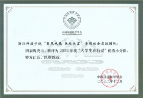 “聚焦双碳 共赴共富”暑期社会实践团队获评“优秀小分队”,程勇杰获评“优秀指导教师”。