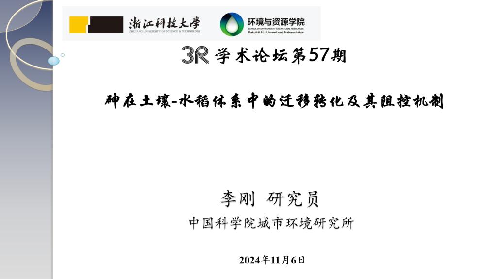 并作“3R”论坛第57期学术报告“砷在土壤-水稻体系中的迁移转化及其阻控机制”。报告由学院副院长张进教授主持,环境工程系教师及研究生等三十余人参加了报告会。