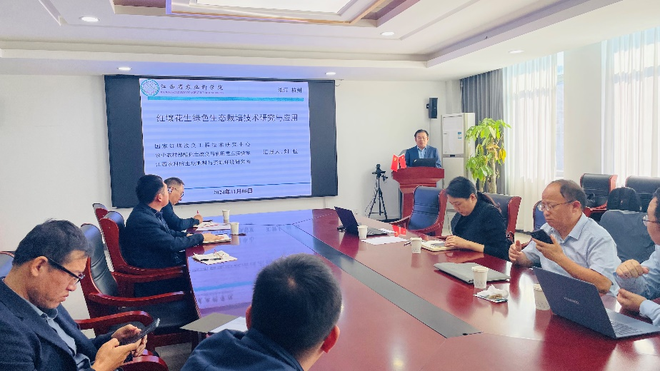 在报告中,刘佳副所长首先介绍了江西红壤分布广和旱地花生种植的基本概况,随后重点讲解了江西红壤花生单产偏低、连作障碍严重、土传病害频发等实际问题,同时系统阐述了红壤酸化是导致花生根际有机碳质量退化、花生植物激素分泌紊乱和土壤细菌多样性降低的主要限制因素并提出了复种绿肥+猪粪有机肥、碱性材料联用、生防菌剂应用等红壤花生消障防病增产技术模式(连续入选江西省农业主推技术)。最后,刘佳副所长和参会师生进行互动交流并对相关问题进行了详细解答。