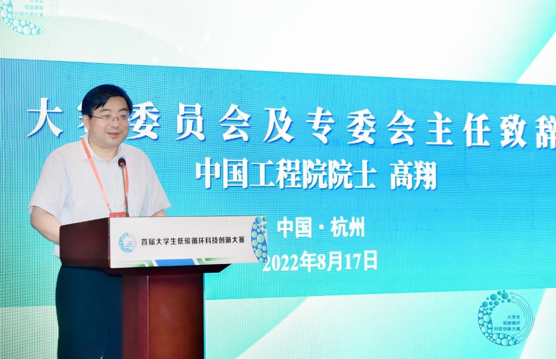 高翔代表大赛委员会讲话,高度肯定了承办单位和秘书处的工作,并指出在碳达峰碳中和国家战略背景下,浙江作为“两山”理念的发源地,要深入贯彻习近平生态文明思想,深刻领会总书记关于碳达峰碳中和的重要论述精神。此次以“低碳循环,绿色发展”为主题的首届大学生低碳循环科技创新大赛的举办恰逢其时,以赛促教、以赛促学、以赛促研、以赛促建,构筑集聚全国大学生“双碳”相关专业人才的科研创新高地,充分挖掘和发挥大学生群体在应对全球气候变化中的积极作用。