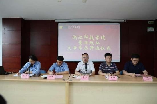 产教融合是是产业与教育深度合作的一种模式,是提高应用型人才培养质量的重要抓手。浙江景兴纸业股份有限公司(简称景兴纸业)是我们的校友企业,近期在人才培养、科研项目、实习实训、员工培训和教师联培等多方面开展了深度合作。2015年完成了110位学员的江科技学院/景兴纸业大专学历大专班学历教育,今年天美传媒