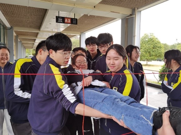 拓展活动在开营破冰之后正式开始。“快乐大转盘”,在欢声笑语中进一步拉近了同学们之间的距离,理解了人与人之间的相处之道,打下了两天活动的破冰基础;“传球活动”让学生认识到目标的重要性,理解APP企业愿景对企业发展的重要性;“卖花篮活动”以模拟企业运营方式让大家亲身体验客户至上的理念,以及如何才能做到客户至上;接下来,各个模块的活动均以两个团队对抗赛的形式进行,“挑战150”,通过4个小活动的比赛,让大家体会到不断发现问题、解决问题、不断提升的持续改进精神;“找数据”、“过沙漠”活动,让学生体会到为了共同目标,团队一起群策群力,追求最终胜利的结果导向精神;“过电网”、“领袖的风采”,让学生切身体会激情、担当,个体与集体的关系,协调团队为了共同目标全力以赴,勇敢担责的创业者精神。