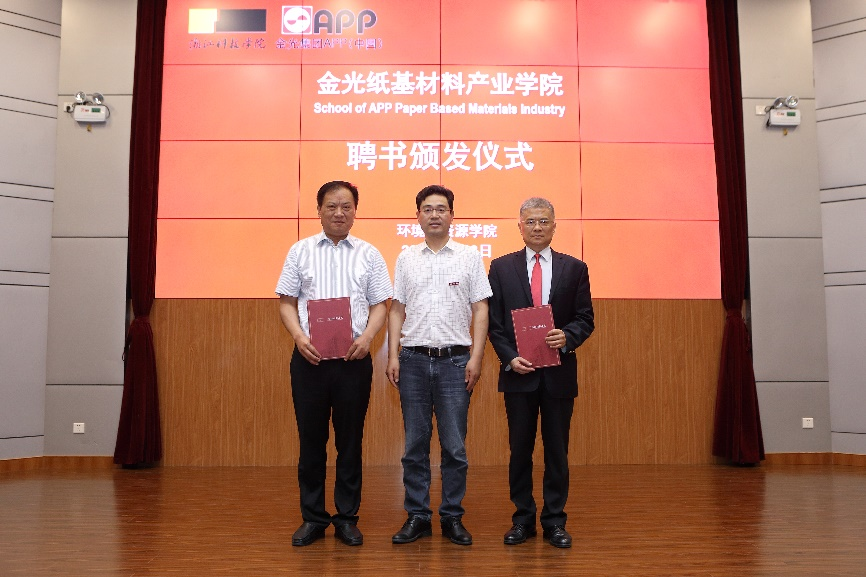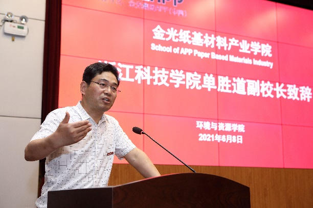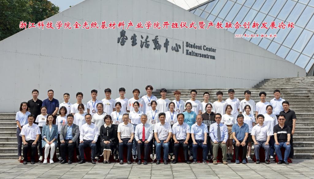6月8日,金光纸基材料产业学院特色班开班仪式暨产教融合创新发展论坛在图西报告厅举行。副校长单胜道、省经信厅消费品工业处处长刘伟龙、省造纸学会理事长胡开堂、省绿色科技文化促进会秘书长忻皓、金光集团中国区人力资源总经理江俊德、教务处处长沙力争、天美传媒