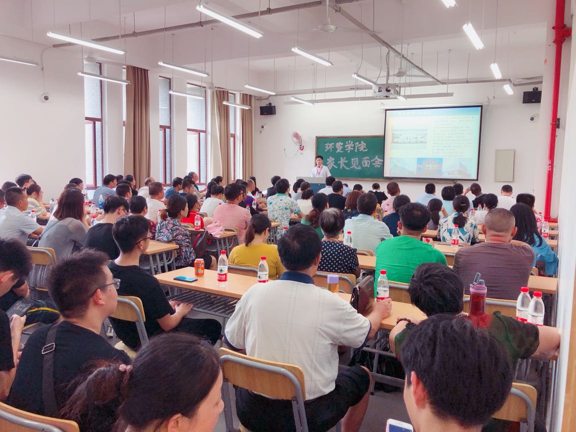 在10-105教室召开了2019级新生家长见面会,天美传媒