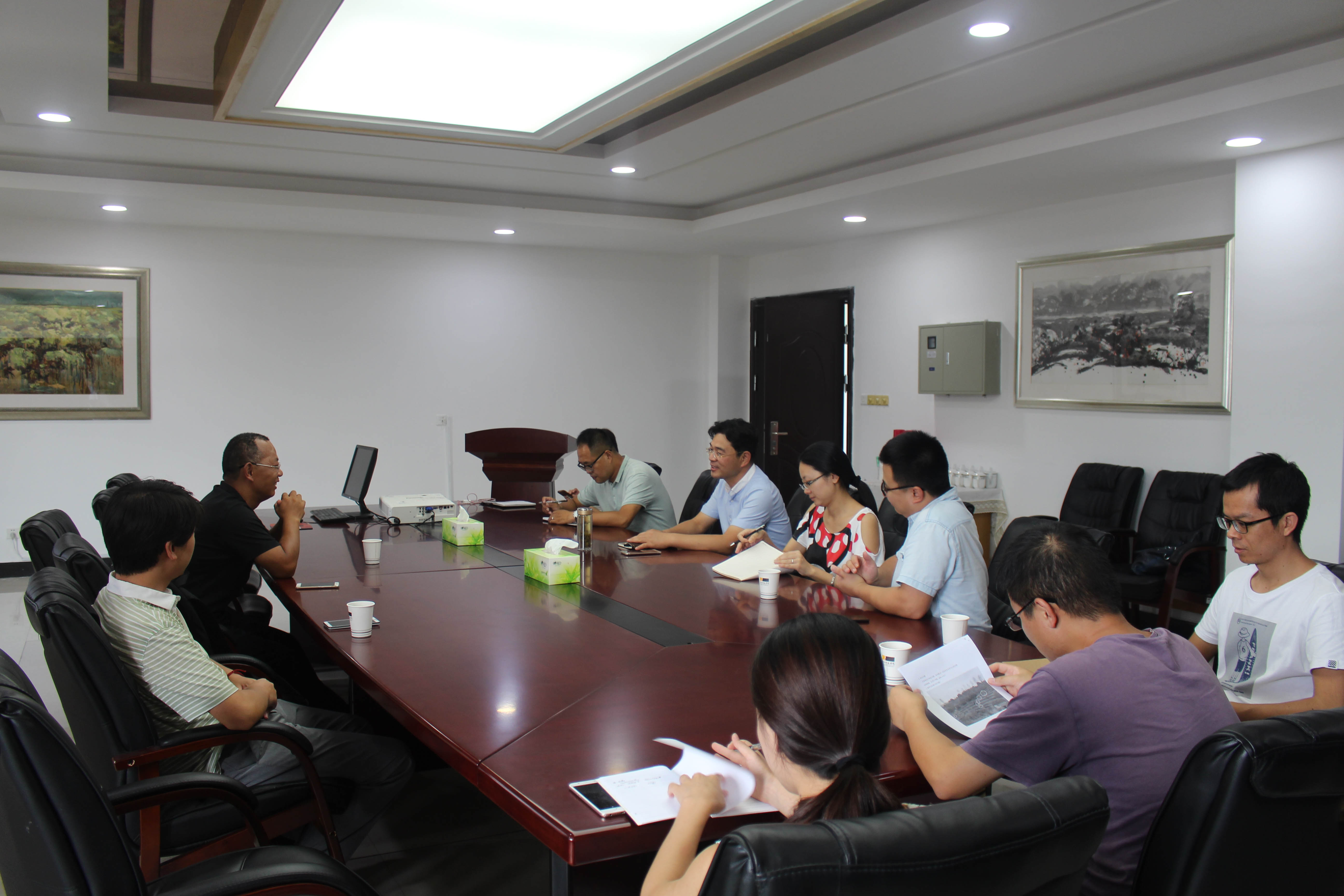 李永建总经理介绍了华清至美生态修复工程有限公司成立历史、经营范围和近几年的业务工作。双方有关技术人员分别就土壤改良修复、养殖废弃物资源化利用、水体修复、碳汇等研究工作进行了讨论,并交流探讨合作的可能性。