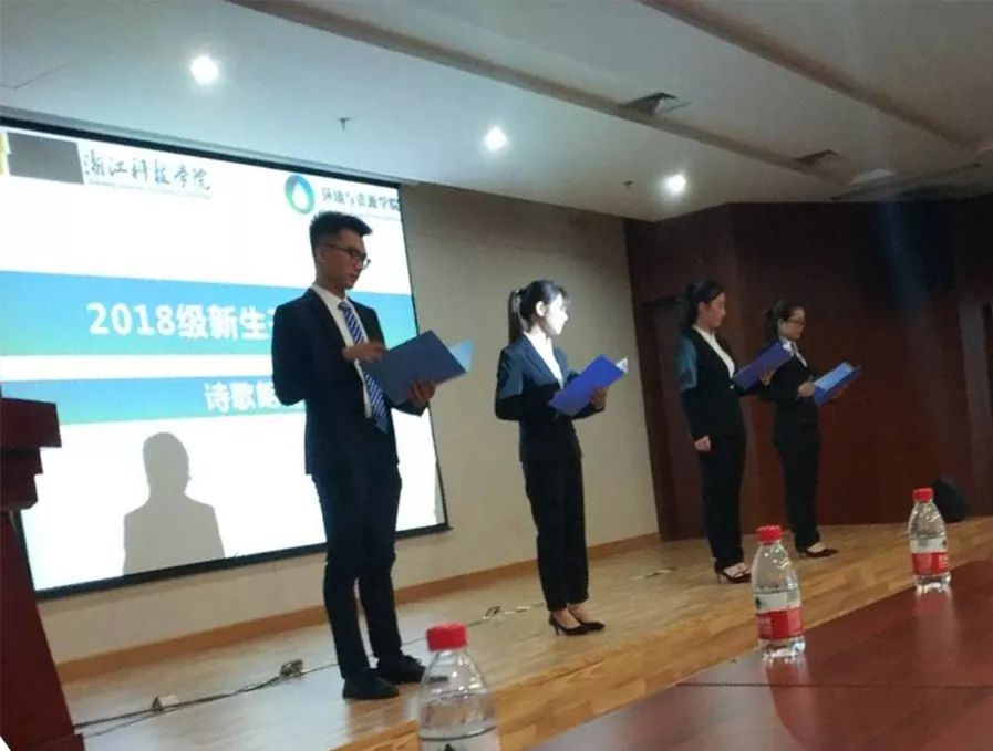 校友代表胡浩威、老生代表徐浩波从自身经历与切身体会出发,为同学们的大学生活提出多方面的建议;助班团队的诗朗诵、新生代表的歌曲演唱让同学们感受到大学的激情与活力;新生代表井海阳的发言,更加展示新一代环资人对学院的骄傲与对未来的追求。