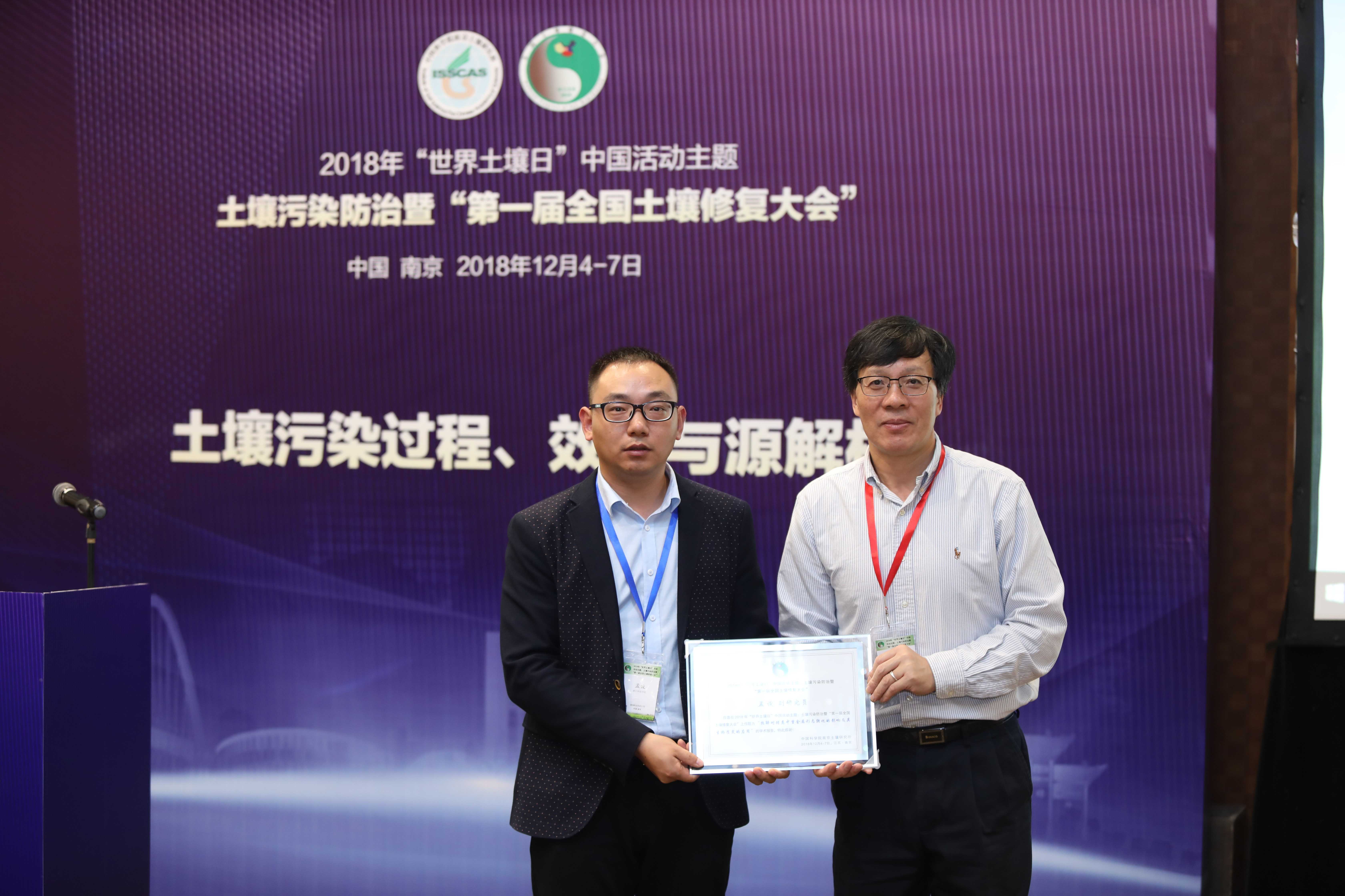 研究人员张进副教授和孟俊副研究员参加了大会,孟俊副研究员在土壤污染过程、效应与源解析分会场作了“热解对猪粪中重金属形态转化的影响及其生物质炭的应用”的报告,主要从我国猪粪中重金属的污染现状、热解对猪粪中铜和锌形态转化的影响、生物质炭中重金属的潜在释放风险及生物质炭在酸化土壤改良、作物增产、重金属污染土壤和水体修复中的应用等方面同与会同行进行了交流和探讨。