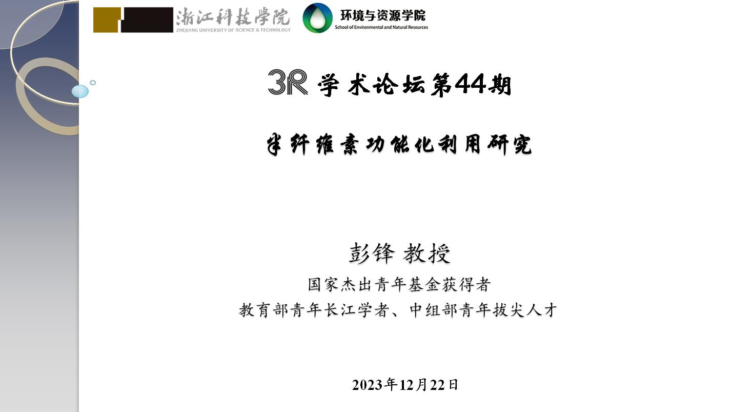 在报告中,彭锋教授首先简要了介绍个人教育、工作经历和科研方向,随后详细介绍了半纤维素高效绿色分离及功能化利用相关研究,主要包括基于有机溶剂法(DMSO、DMF)、连续碱抽提法、水热法和新型低共熔溶剂法对的木质纤维生物质组分的绿色分离和纯化技术以及半纤维素功能性薄膜材料、木聚糖基液态金属墨水、木聚糖-Mxene催化材料、木聚糖纳米晶功能材料和木聚糖基室温磷光体系等的制备及机理研究,随后详细介绍了国家自然科学基金题目摘要、立项依据、立项背景、研究目的和意义、国内外研究现状及存在的问题、关键科学问题、技术路线等每一部分的撰写要点及注意事项,最后和参会师生进行互动交流,对半纤维素功能化利用过程中存在的问题进行了解答并对国家自然科学基金申请过程中的相关细节提出了中肯的建议。