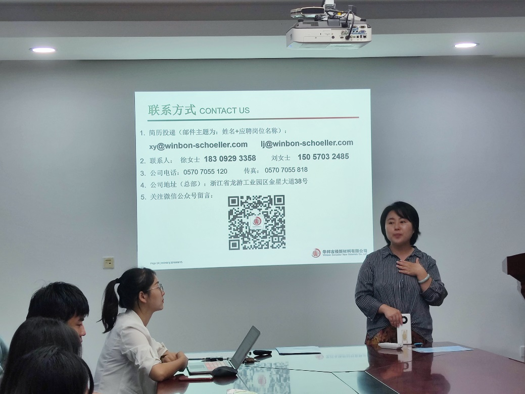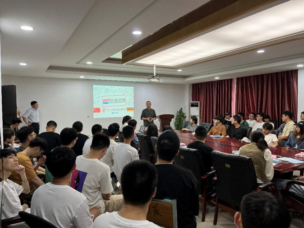 华邦古楼新材料有限公司人事部门总监田雪松女士与人事经理徐媛女士就天美传媒-天美传媒官方出品高清国产成人片、公司特色、工作环境、生活条件、薪资福利、发展途径等方面进行了系统介绍,陈建斌总工对同学们感兴趣的问题作了详细讲解。随后,同学们就普遍关注的实习就业岗位发展前景、薪资待遇等问题积极提问,展开交流。会后,部分同学投递了简历,寻求就业机会。